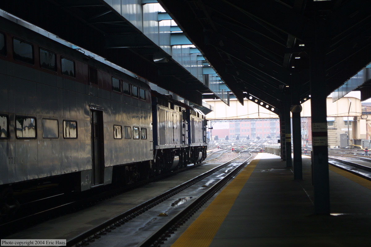 The Southwest Chief backs into Union Station as viewed from Roosevelt Road.